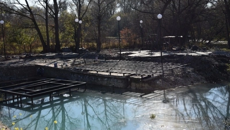 Пространство вокруг родника «Крейдянка» продолжает преображаться в рамках реализации проекта благоустройства. Завершилось асфальтирование парковки, подготовлено основание для купели, заложена основа для будущих настилов и террас, а тропинки уже вымощены тротуарной плиткой.