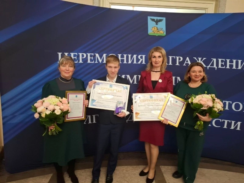 Сертификат и благодарственное письмо главы региона за успешное наставничество получила преподаватель Богдана по специальным дисциплинам Алевтина Денисенко. Кроме того, особую благодарность Вячеслав Гладков выразил маме Богдана Семёнова, Ольге Геннадьевне, за поддержку сына в профессиональном становлении.