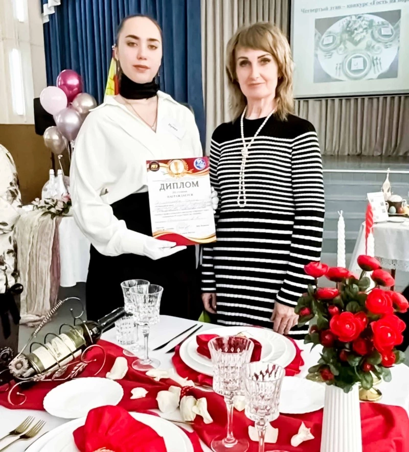 «Ирина выбрала для презентации романтичную тематику — День влюблённых. Она не только составила оригинальное меню, но и безупречно выполнила сервировку стола, а её презентация была отмечена как самая яркая и запоминающаяся», — рассказала преподаватель Вейделевского агротехнологического техникума Алевтина Денисенко.